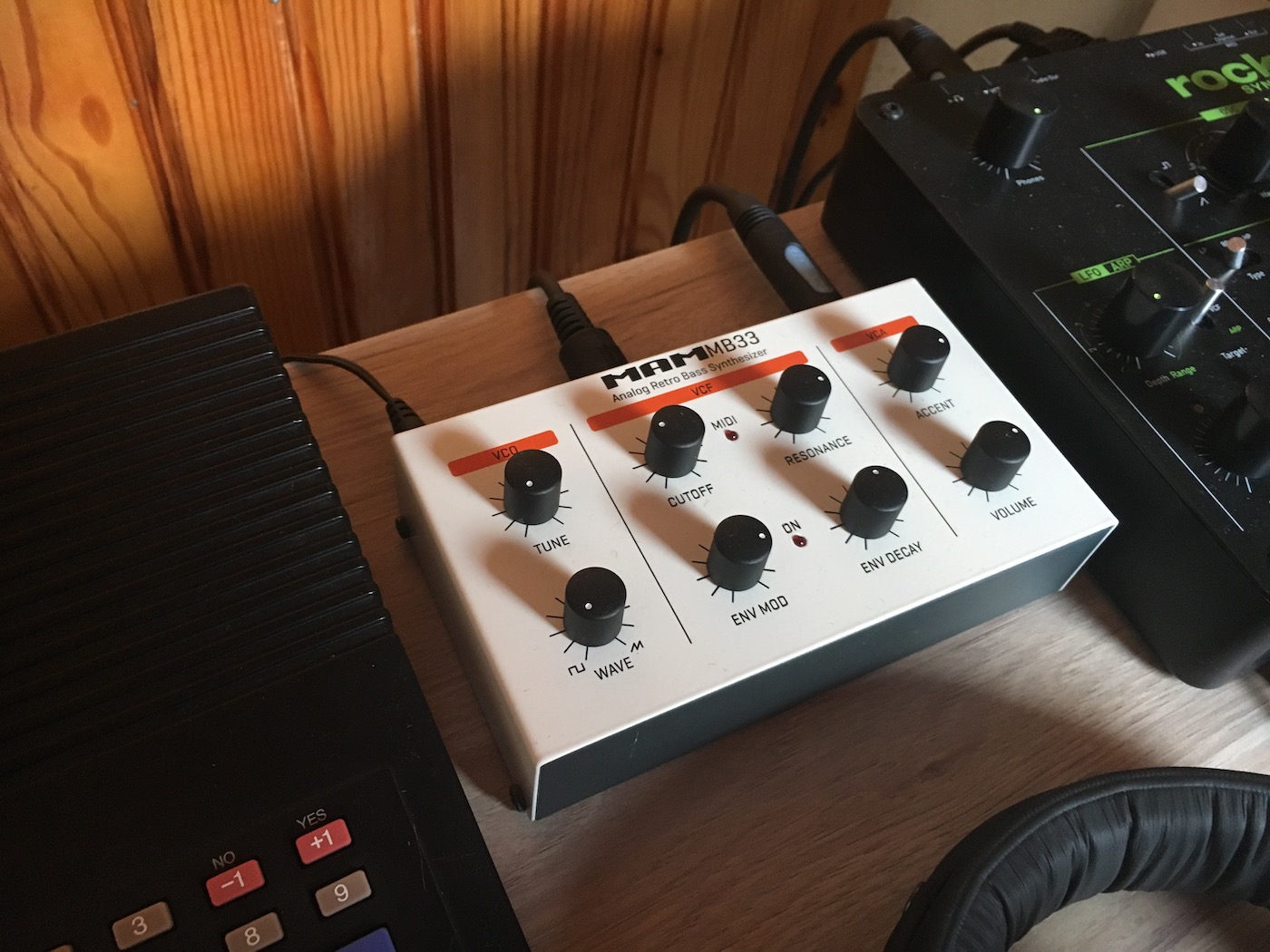 Tout comme le Rocket, le "MB33" de chez MAM est un petit synthétiseur compact mais plus basique et surtout plus limité. En effet la MB33 est un clone de la célèbre TB-303 de Roland et est donc destiné à produire exclusivement des sonorités orientées "acide bassline". Elle est certes plus limité que les autres clones (seulement 8 paramètres modifiables) mais elle se démarque surtout par son prix (moins de 150 euros) et sa qualité sonore de sortie.