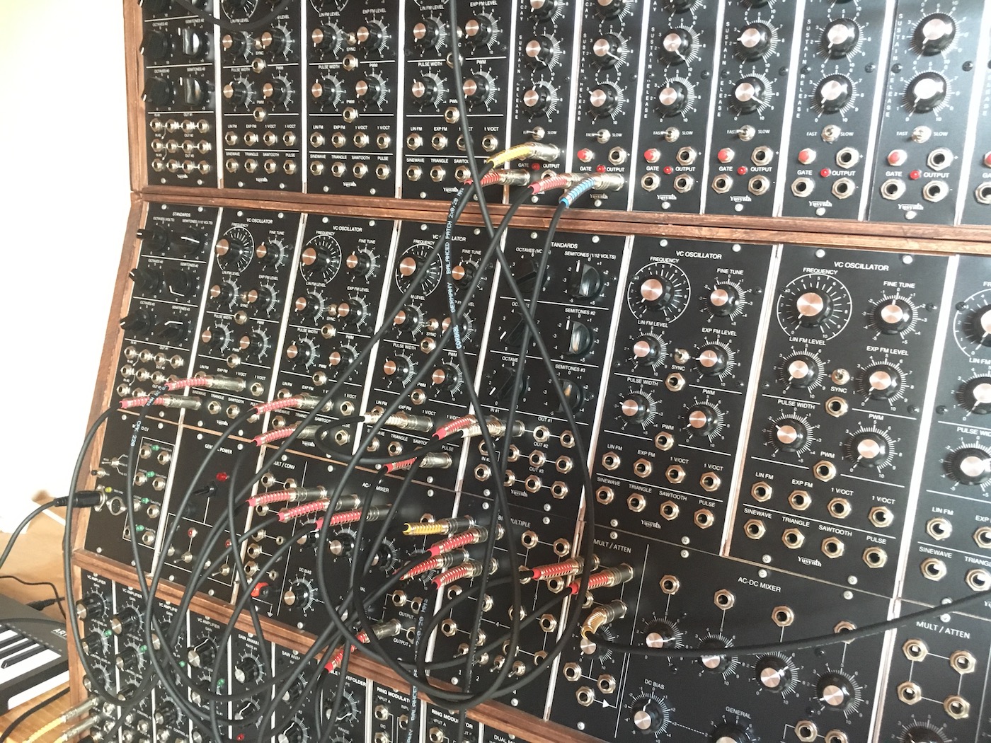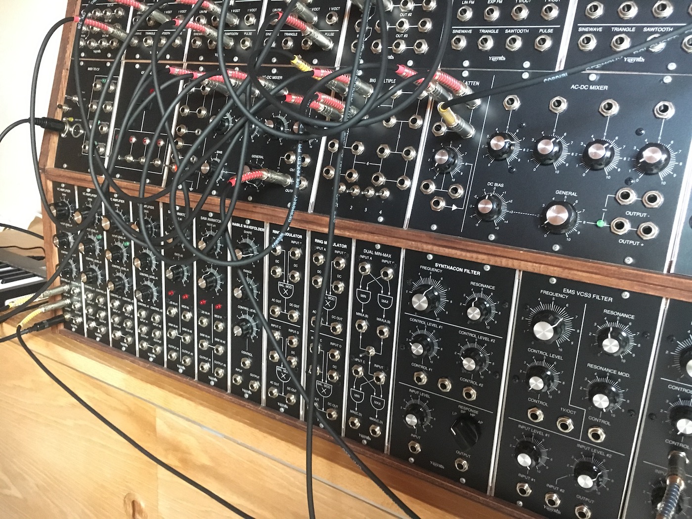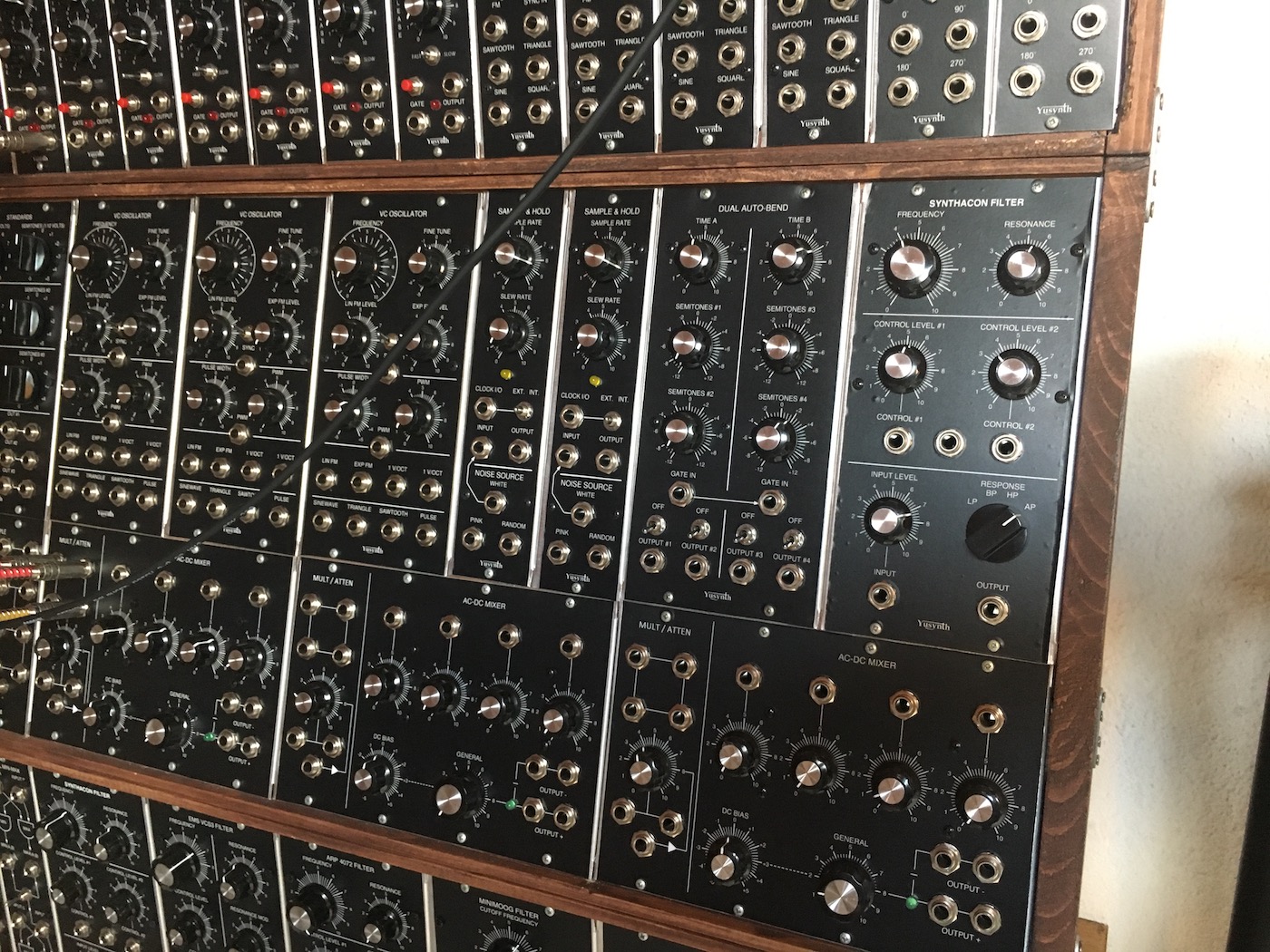 Il s'agit d'un GRAND système modulaire à base de modules YUSYNTH pour la majeure partie, ACXSynth et perso. Si ce projet est classé comme achevé, celui-ci est voué à une constante évolution.