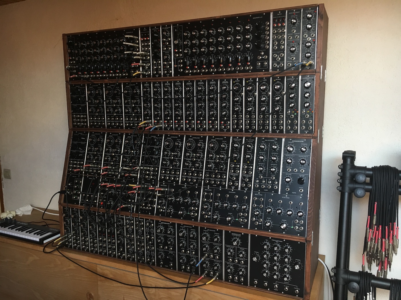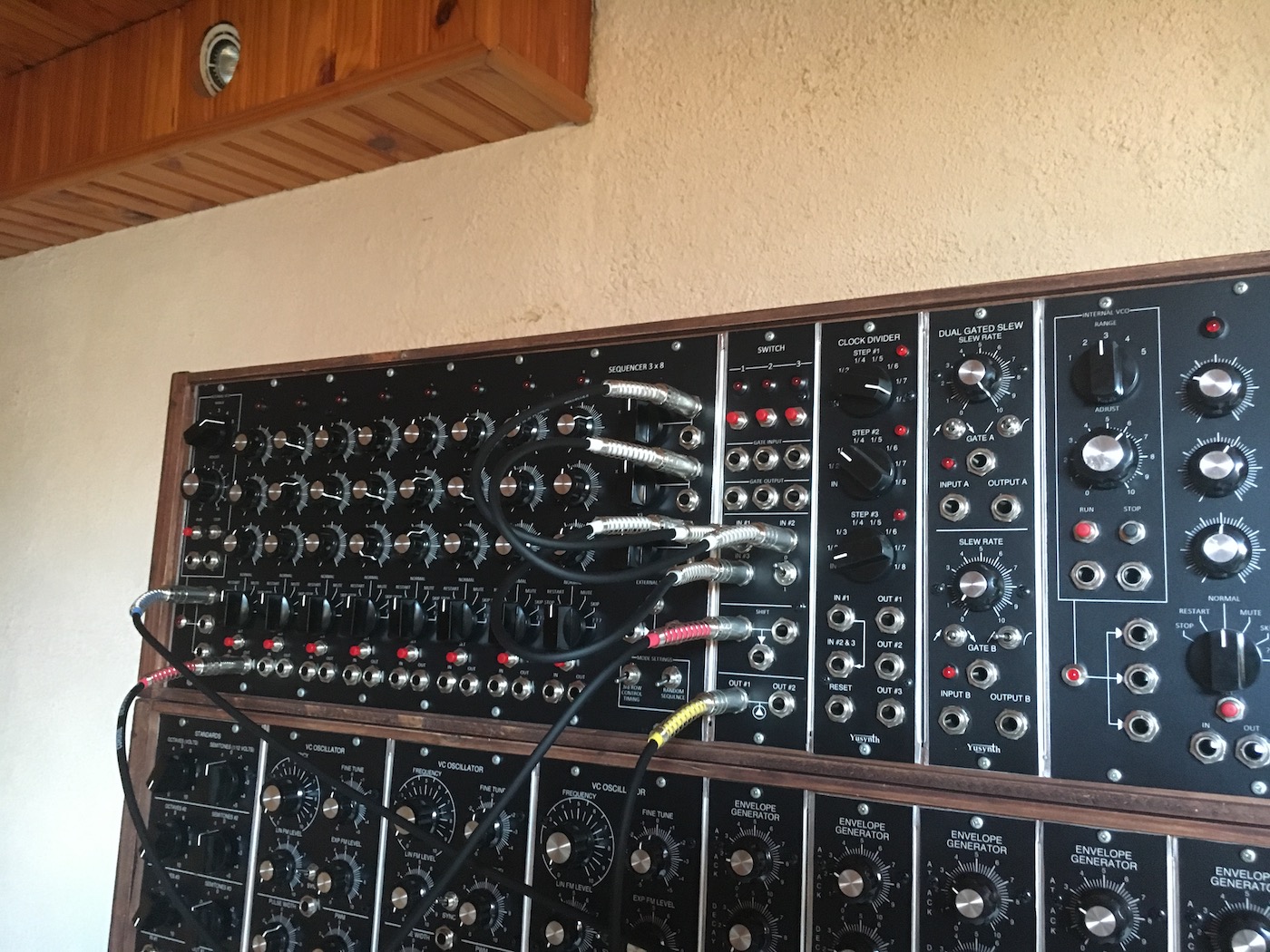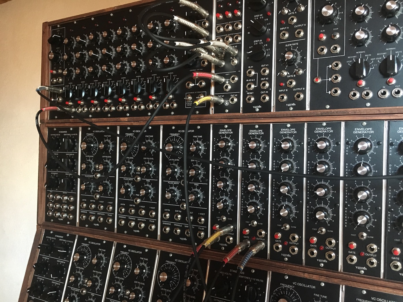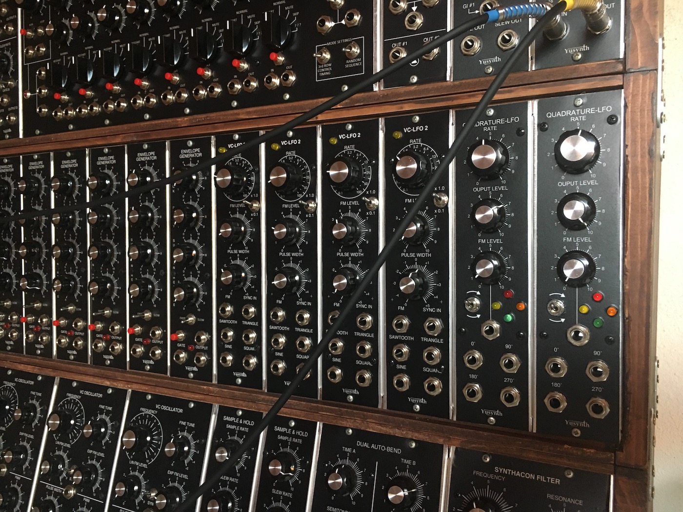 Il s'agit d'un GRAND système modulaire à base de modules YUSYNTH pour la majeure partie, ACXSynth et perso. Si ce projet est classé comme achevé, celui-ci est voué à une constante évolution.
